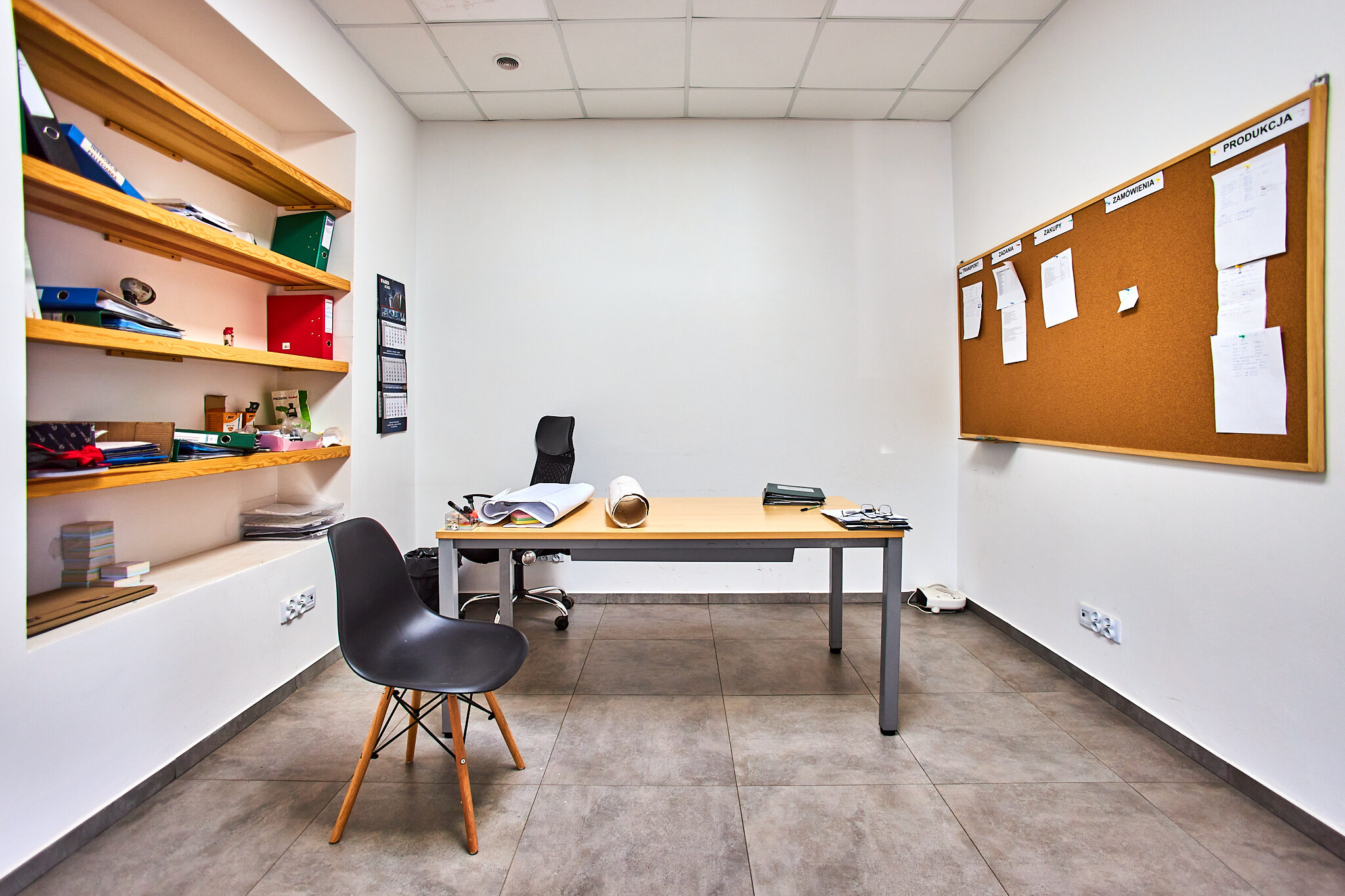Zaplecze biurowe pozwala prowadzić działalność administracyjną i operacyjną na miejscu, bez konieczności dodatkowych wynajmów.
