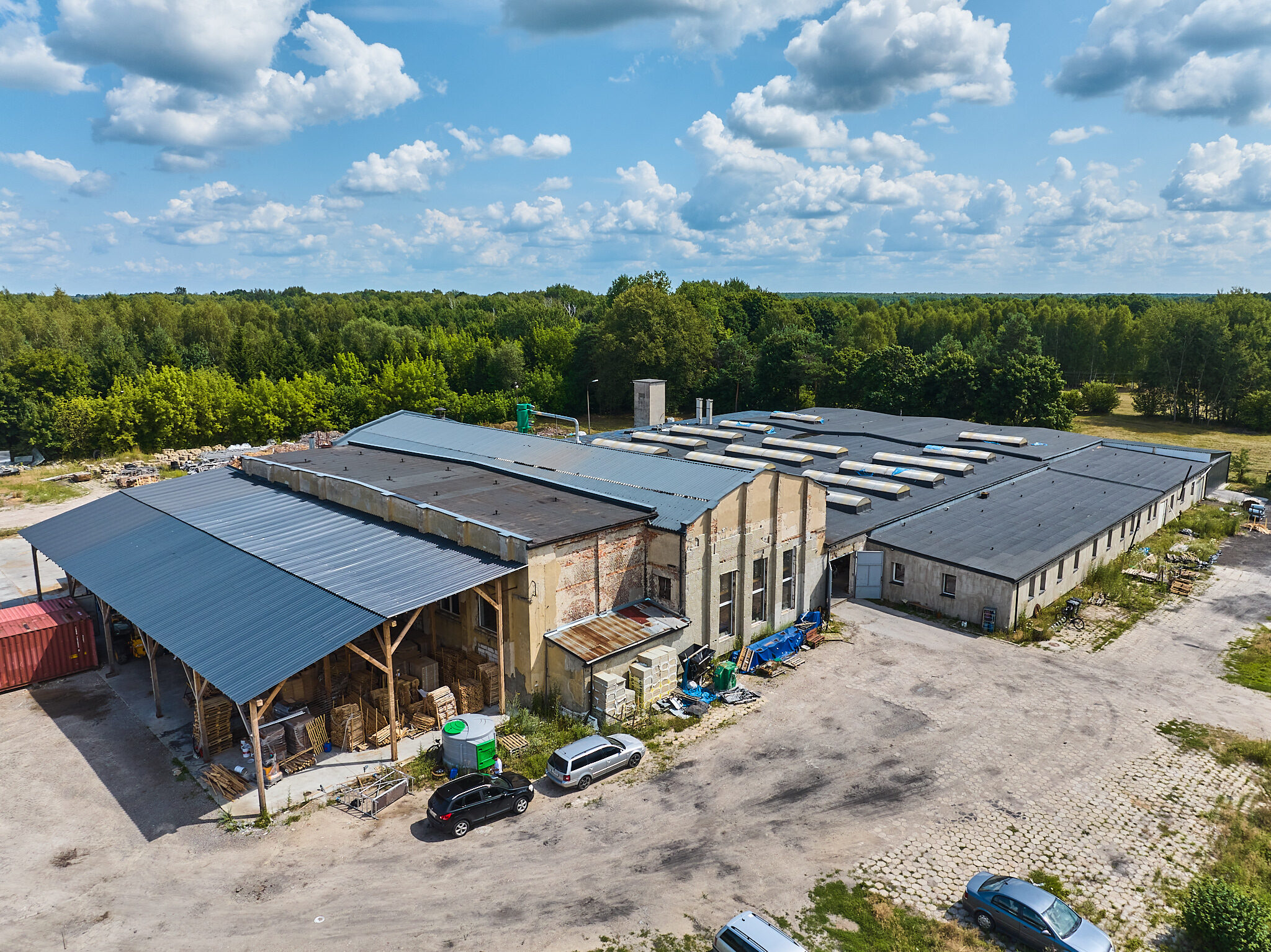 Powierzchnia użytkowa 3312,86 m². Obiekt w konstrukcji stalowej, posadowiony na żelbetowych fundamentach, z wypełnieniem ścian prefabrykatami i cegłą. Dach z płyt warstwowych. Wysokość użytkowa pozwala na prowadzenie procesów przemysłowych oraz składowanie towarów. Wyposażenie obejmuje instalację elektryczną zasilaną z własnego transformatora, oświetlenie, instalacje wodno-kanalizacyjną, ciepłowniczą i sieć telefoniczną. Stan techniczny – zadowalający, po pracach remontowych i modernizacyjnych. Ponadto obiekt rozbudowano o blisko 1000 m² zewnętrzych wiat.